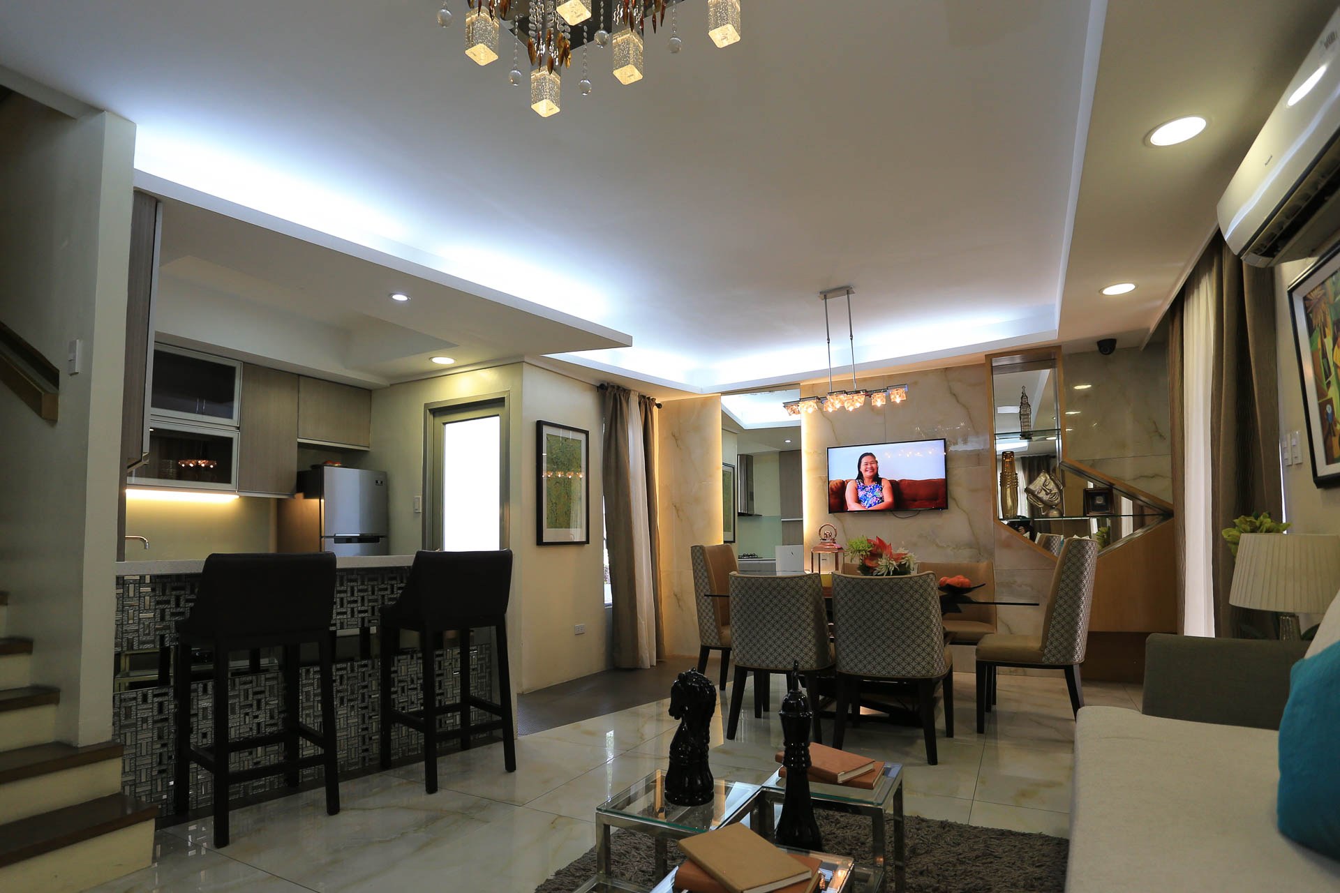 Downstairs is an open room setup with a spacious sala, dining area and kitchen connected together para sama-sama ang lahat when mom is cooking in the kitchen, dad is relaxing in the couch and the children are seated at the dinner table. The high ceilings are also designed to help keep the house cool all year round.